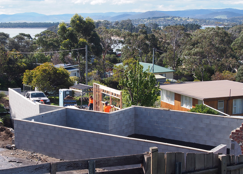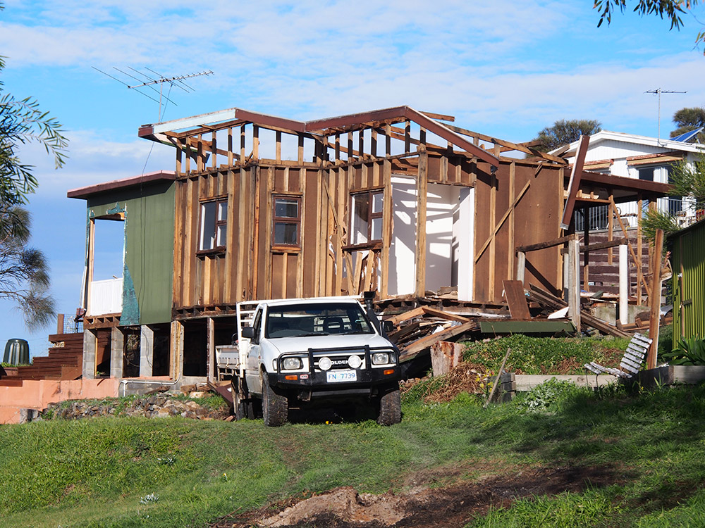 An original fibro shack on a block of land was demolished. An impressive new house perched on the top of the cliffs looking over Park Beach, maximising the water views and north facing aspect was built on the site for the owners.