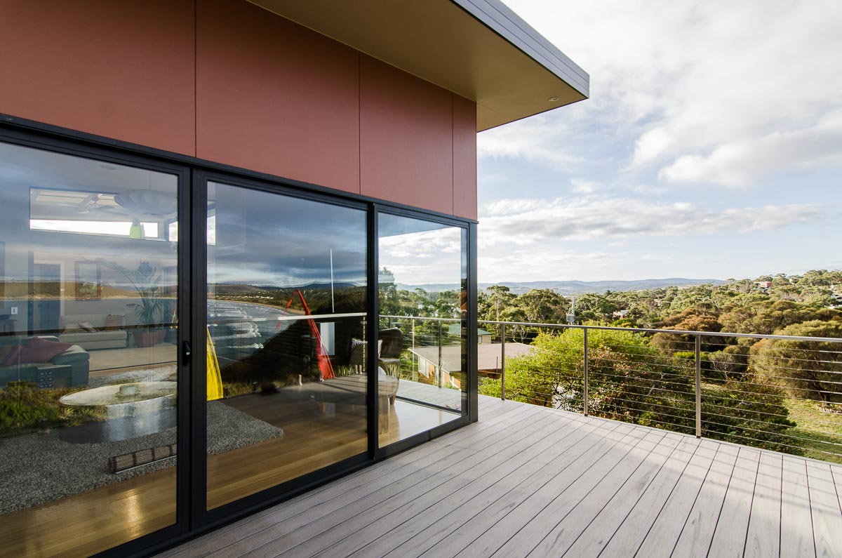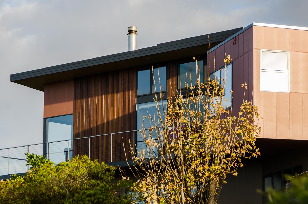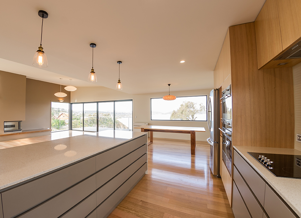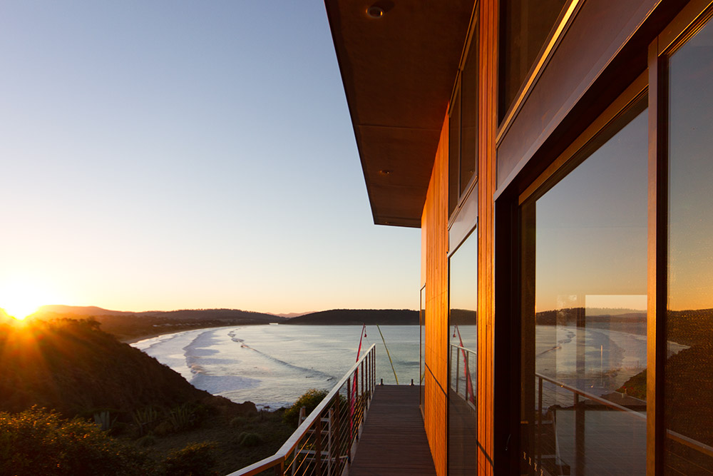 “Imposing yet sensitive exterior blending into a superb clifftop location. Innovative yet functional design, maximising utility while taking advantage of sweeping ocean views. The living area features a stunning European fireplace. The clients are thrilled that despite a modest budget the high standard of workmanship and well-appointed kitchen and bathroom areas enhance what is clearly quite a complex building project.”