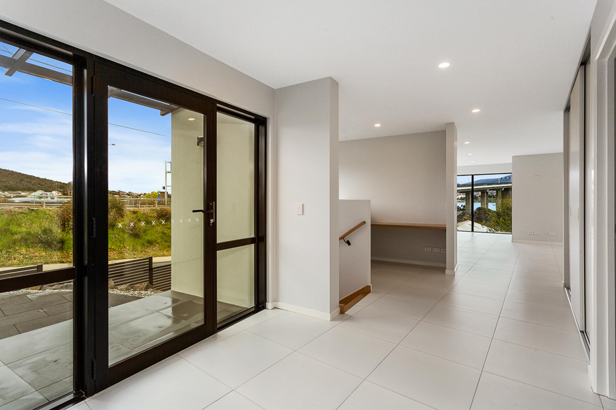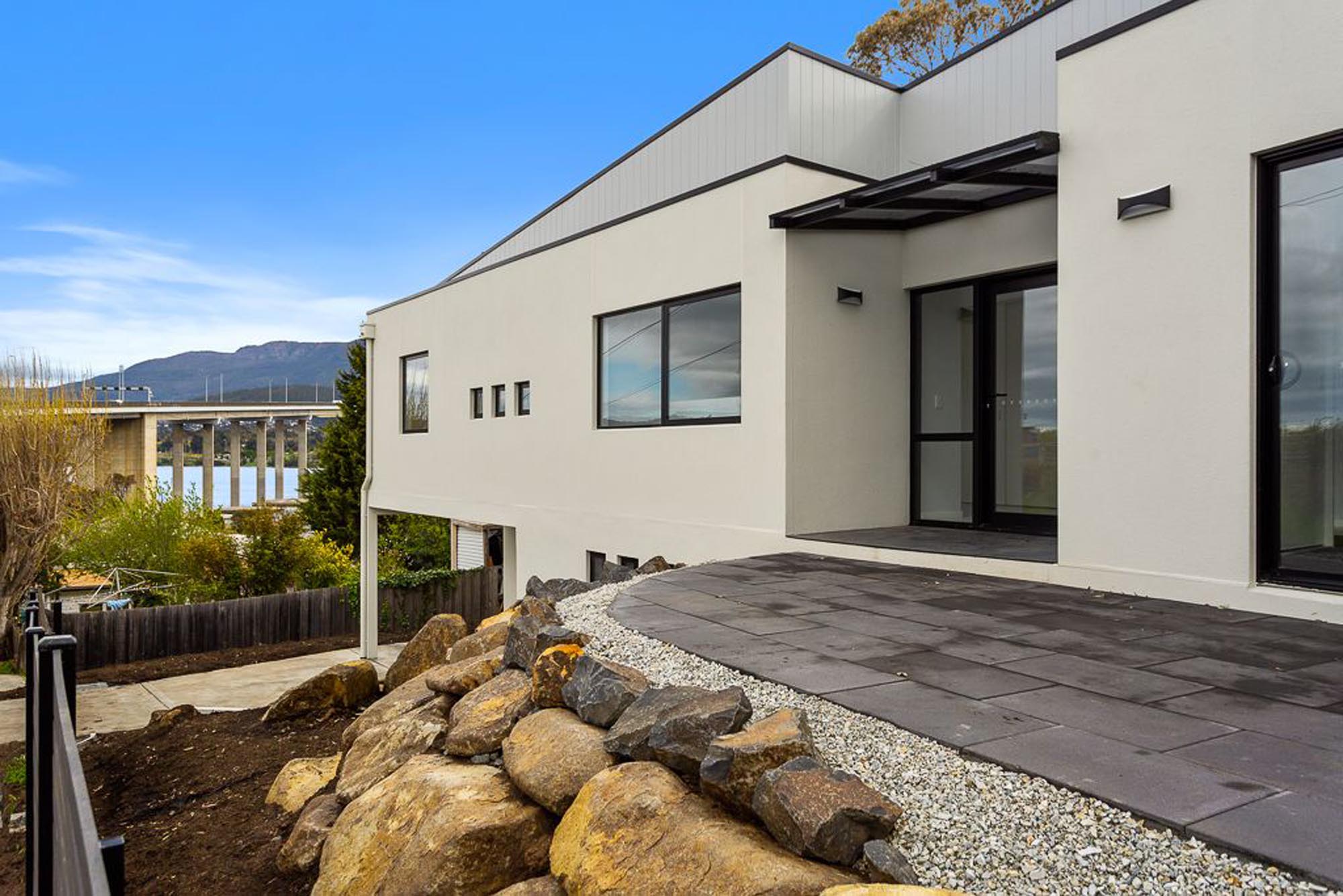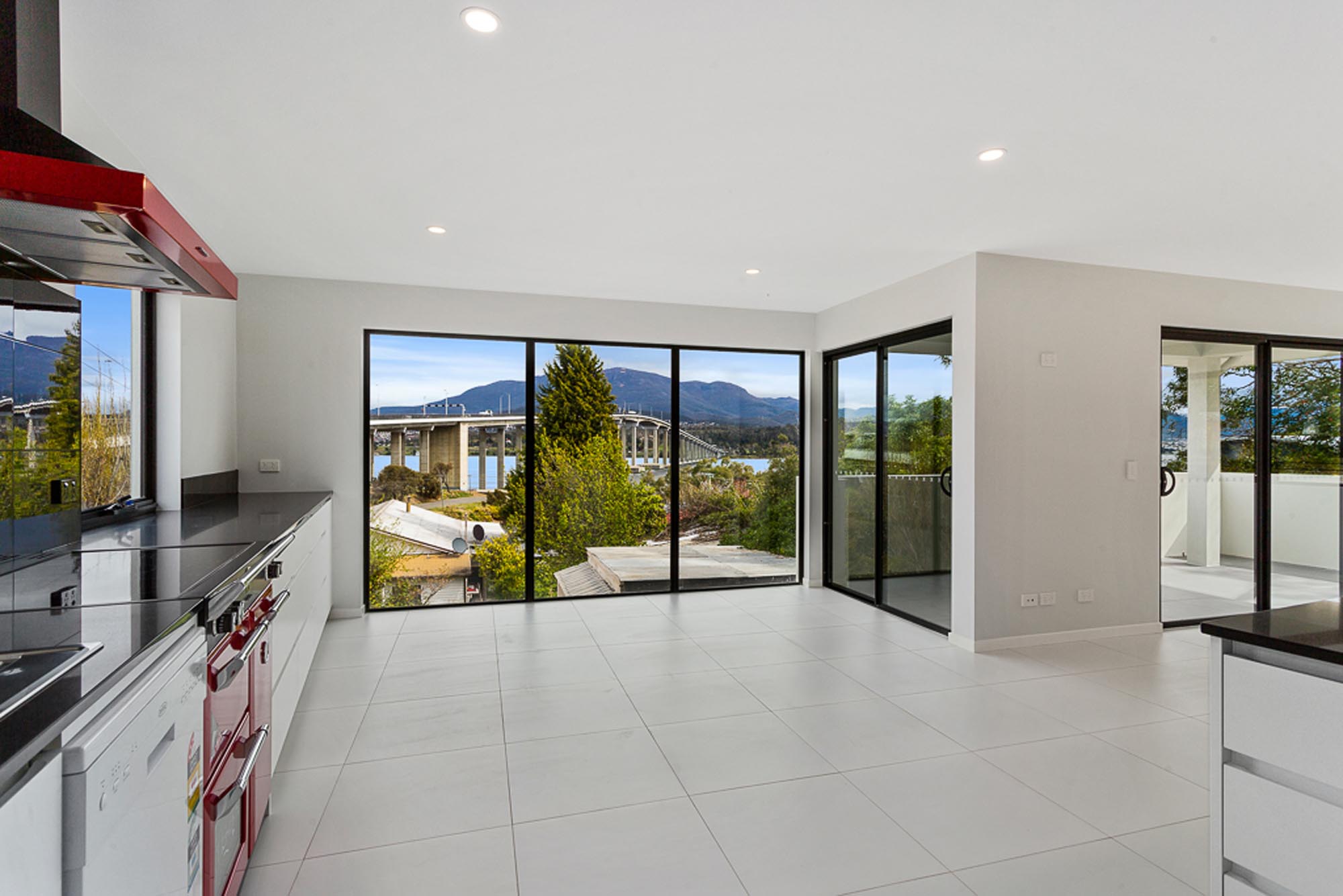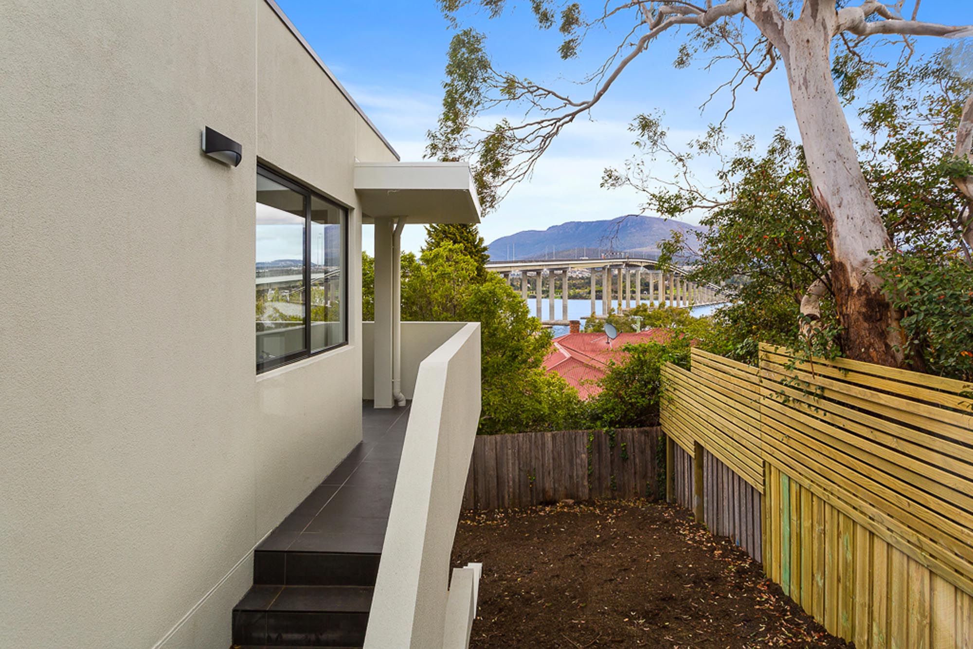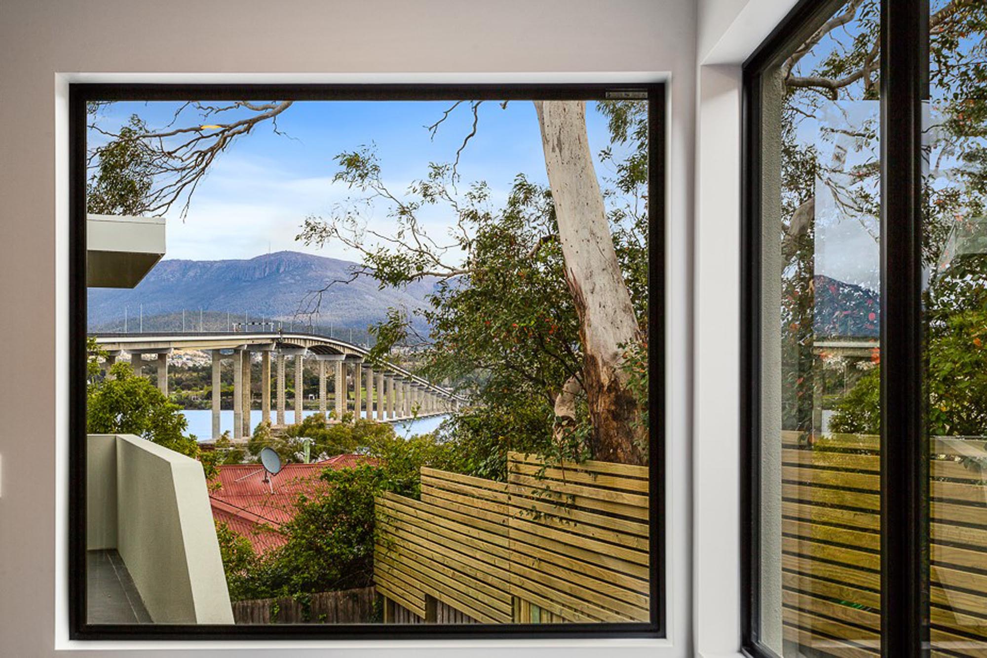 The architect designed house captures and frames stunning views of the Tasman Bridge and Derwent River from all living areas. It enjoys all day sun and the design protects to privacy of the owners within a smallish footprint.